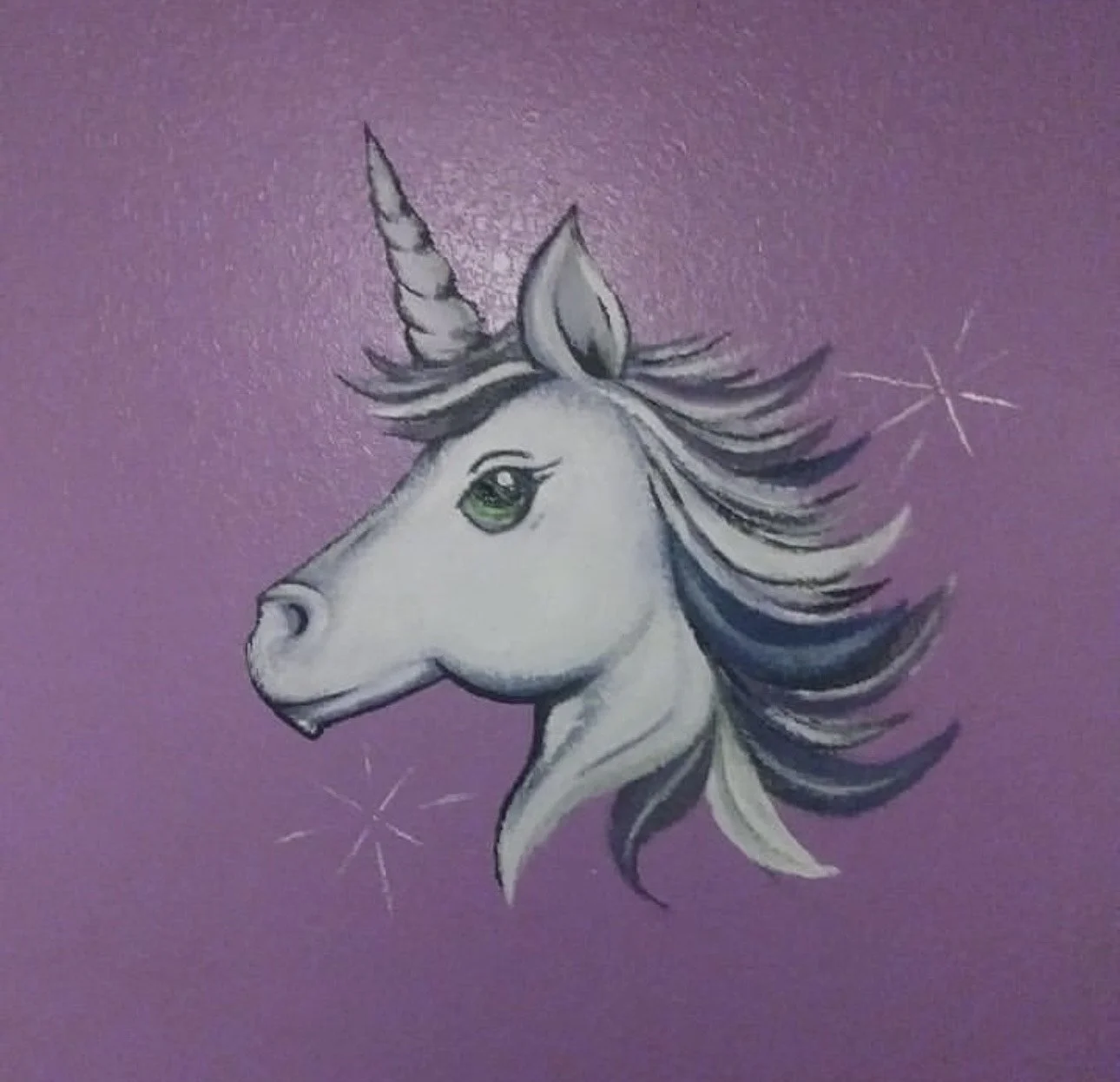 I had a chance to paint one of my friends daughters rooms. I used Acrylic paint for this piece its of a unicorn that i usually painted during faceprinting sessions. .