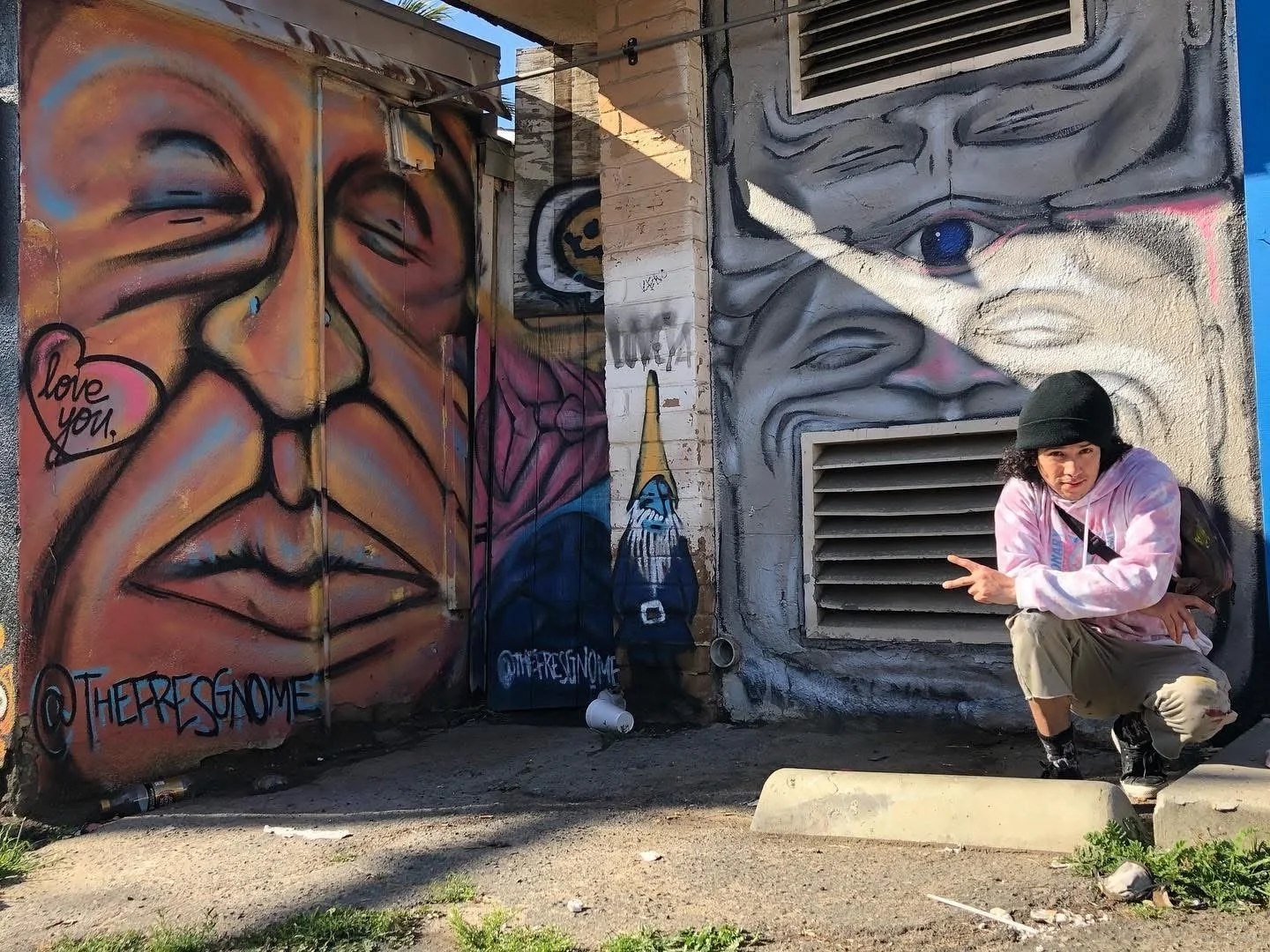 It all began with my Mom allowing me to paint my walls. i’m not sure what prompted this but it allowed me a place to practice as long as i let the room air out before she got back home. When i was a child we moved to Sanger California a Small town that had a handful of memorable Murals that i would see on our drives to church. As i got older i would explore the City and find murals and graffiti and was inspired to paint. When my mom began working in the famous Tower district in Fresno Ca I was exposed to even more murals and walls covered with art work. Thus feeding my obsession with painting larger and larger and larger…