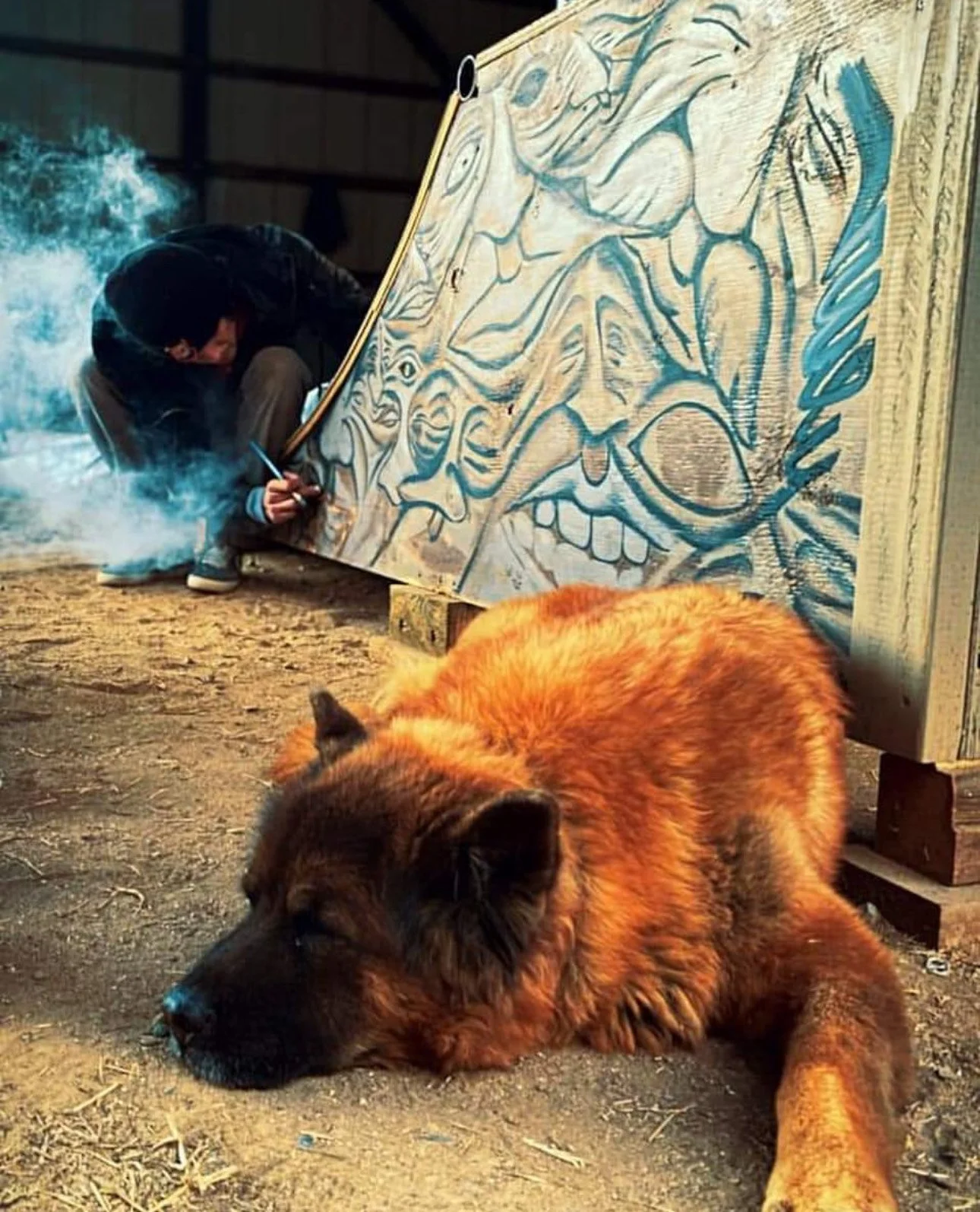 This psychedelic collage is on the side of a mini ramp located at Fresno local Photographer Marcus Esparzas house. i painted it all with brushes it took like 4 sessions to complete.